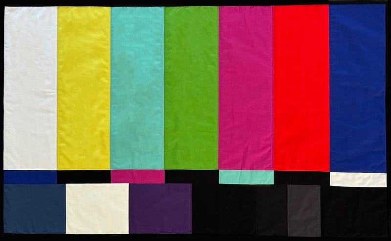 Description: Recalibration is based on the SMPTE color bars used as a television test pattern. It serves as an example to pause, reflect and reset amongst chaos.